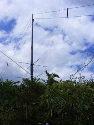 --- Dipolo ripiegato 20 mt,--- loop magnetica da 40 a 10 mt in compagnia di 5/8 per 2 mt,--- --- turnstile per sat meteo,--- verticale per 40 mt.--- |